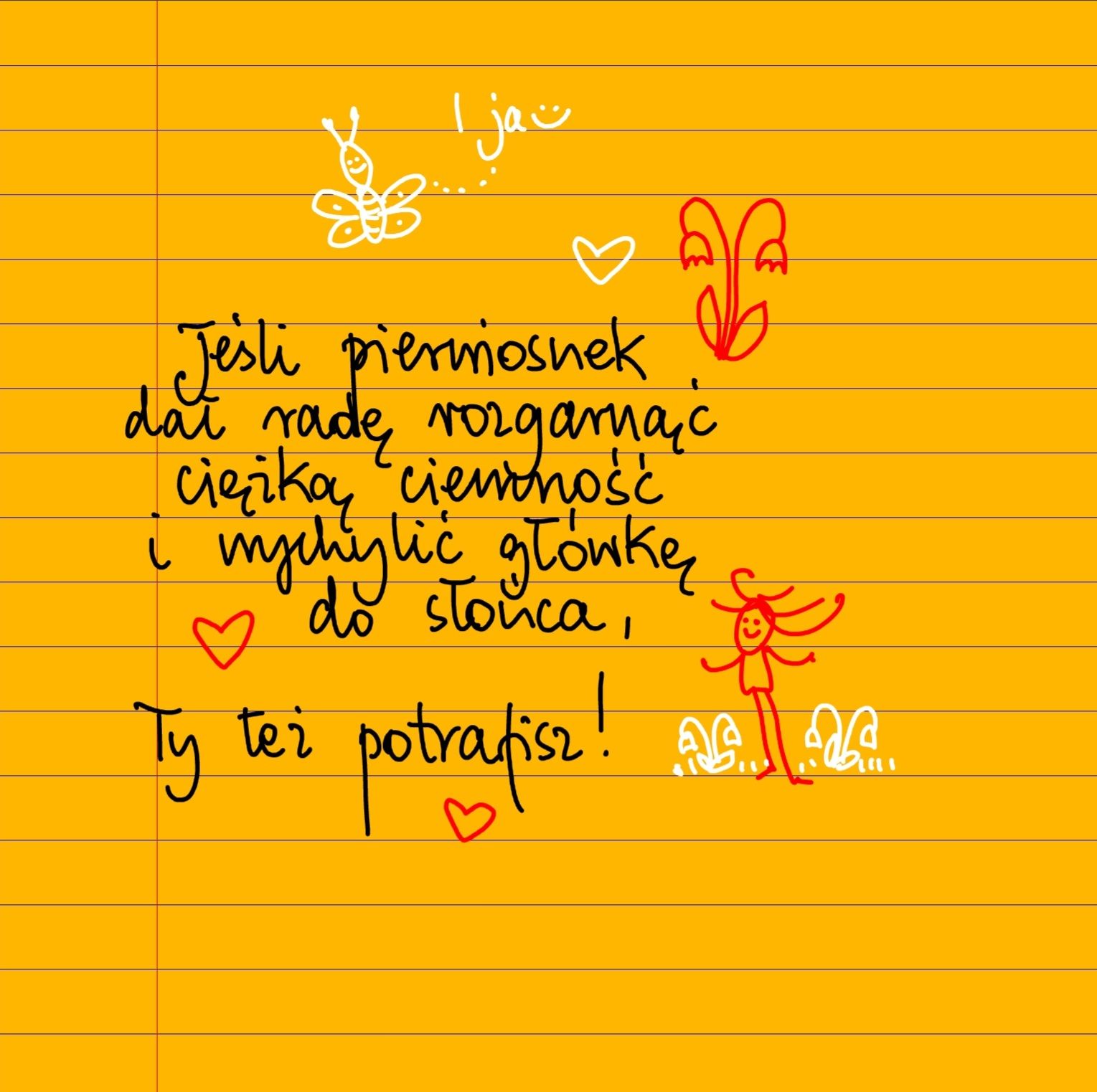 Jeśli pierwiosnek dał radę rozgarnąć ciężką ciemność i wychylić główkę do słońca, ty też potrafisz ❤ Nie poddawaj się. Masz w sobie wielką siłę ❤ #żółtakartka