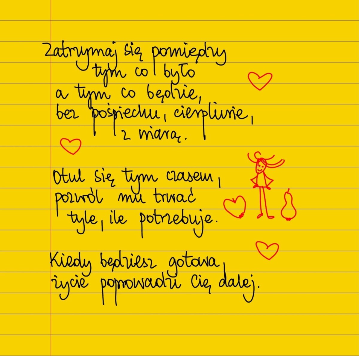 Zatrzymaj się pomiędzy tym co było a tym co będzie, bez pośpiechu, cierpliwie, z wiarą. Otul się czasem, pozwól mu trwać tyle, ile potrzebuje. Kiedy będziesz gotowa, życie poprowadzi Cię dalej. #żółtakartka