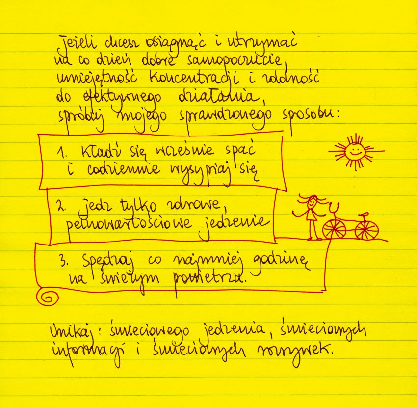 Jeśli chcesz osiągnąć i utrzymać na co dzień dobre samopoczucie, umiejętność koncentracji i zdolność do efektywnego działania, spróbuj mojego sprawdzonego sposobu: