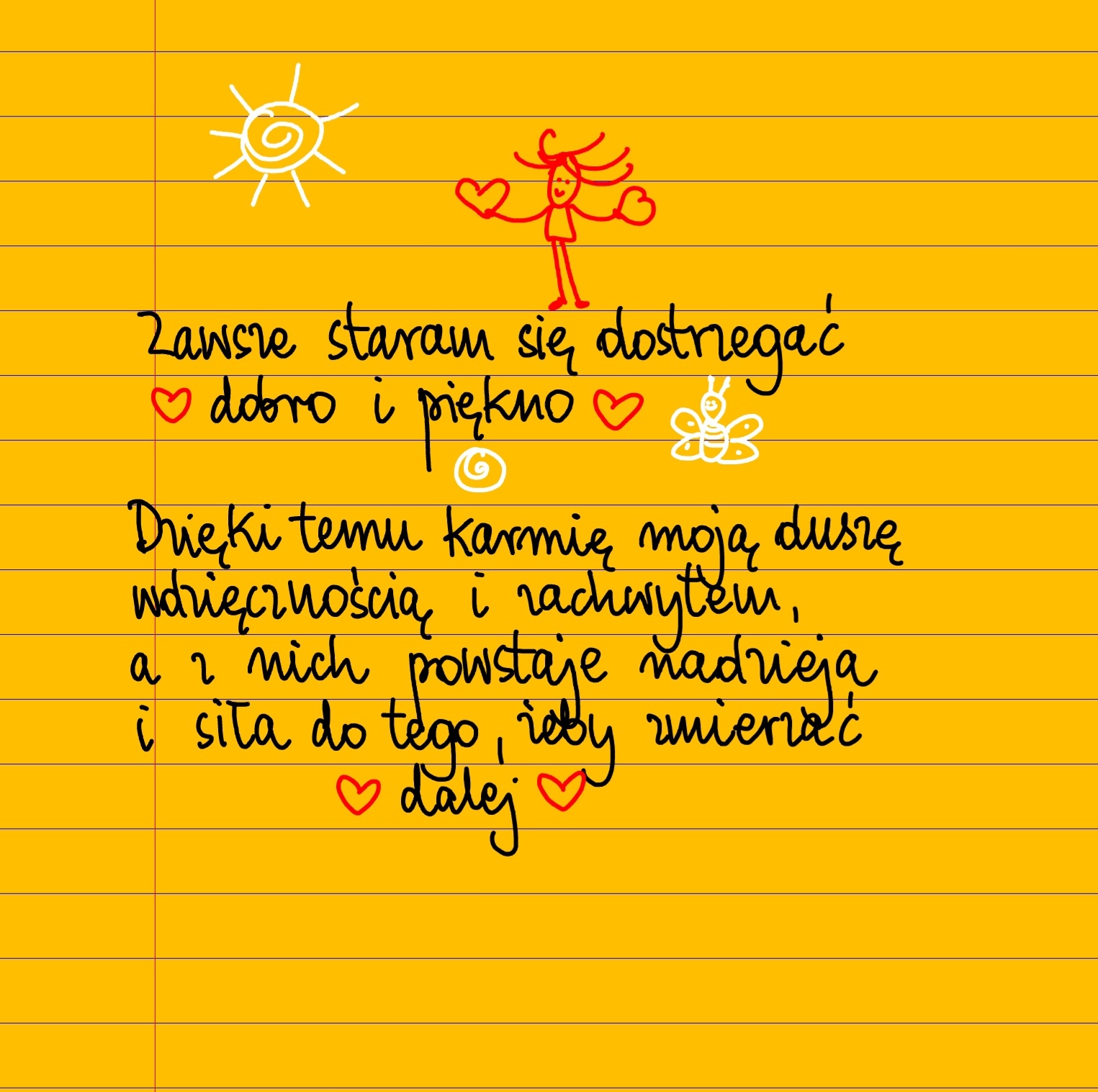 Zawsze staram się dostrzegać dobro i piękno. Dzięki temu karmię moją duszę wdzięcznością i zachwytem, a z nich powstaje nadzieja i siła do tego, żeby zmierzać dalej ❤