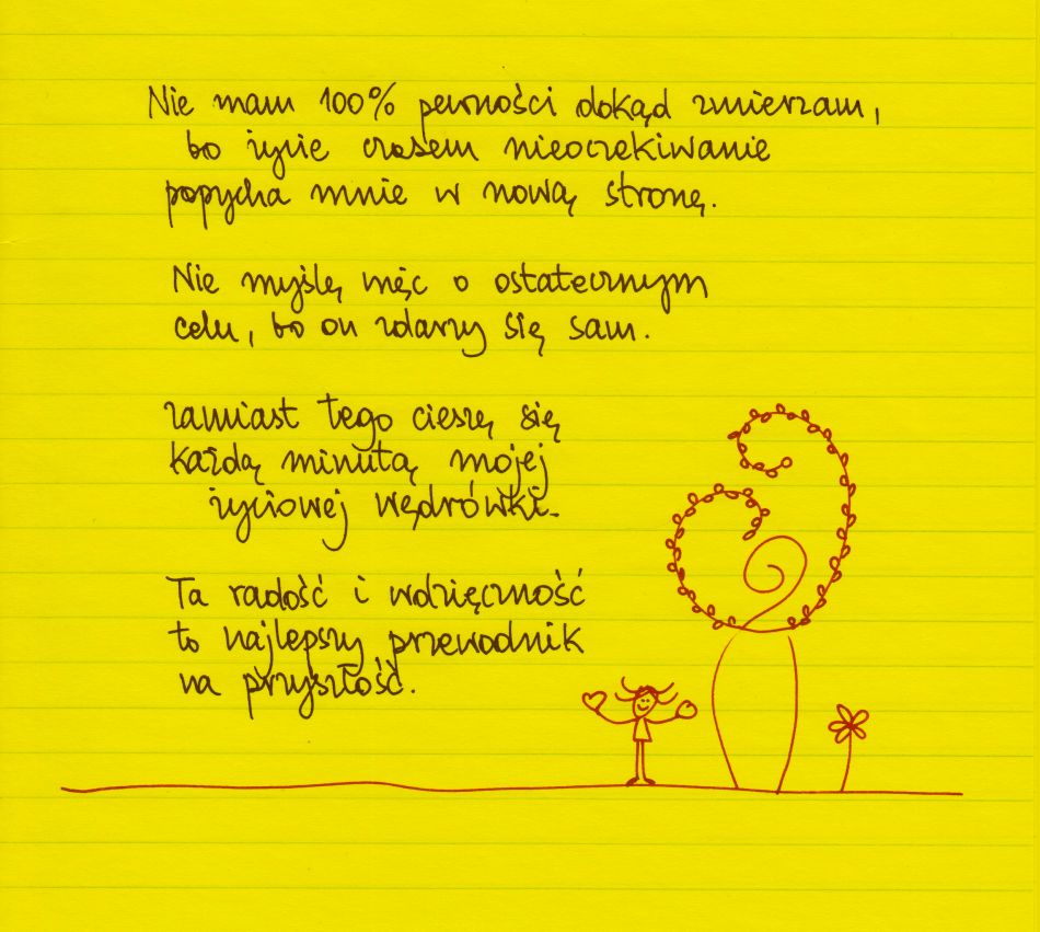 Nie mam 100% pewności dokąd zmierzam, bo zycie czasem nieoczekiwanie popycha mnie w nową stronę. Nie myślę więc o ostatecznym celu, bo on zdarzy się sam. Zamiast tego cieszę się każdą minutą mojej życiowej wędrówki. Ta radość i wdzięczność to najlepszy przewodnik na przyszłość. #żółtakartka