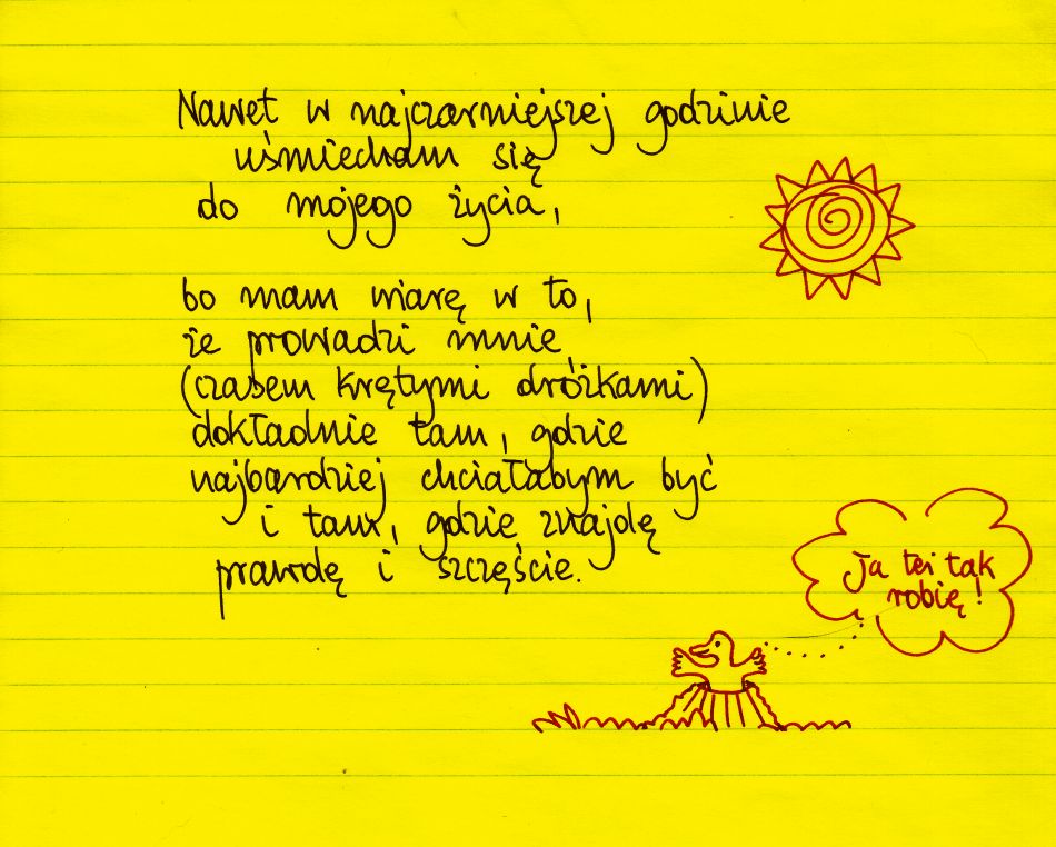 dzięki z żółte kartki... One często porządkują moje myśli i emocje. Bądź zdrowa i podróżuj kiedy czujesz taką potrzebę. Pozdrawiam…