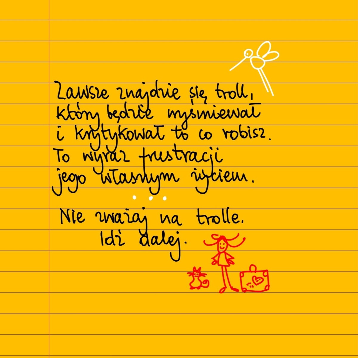 Zawsze znajdzie się troll, który będzie krytykował i wyśmiewał to co robisz. To wyraz frustracji jego własnym życiem. Nie zważaj na trolle, idź dalej. #żółtakartka