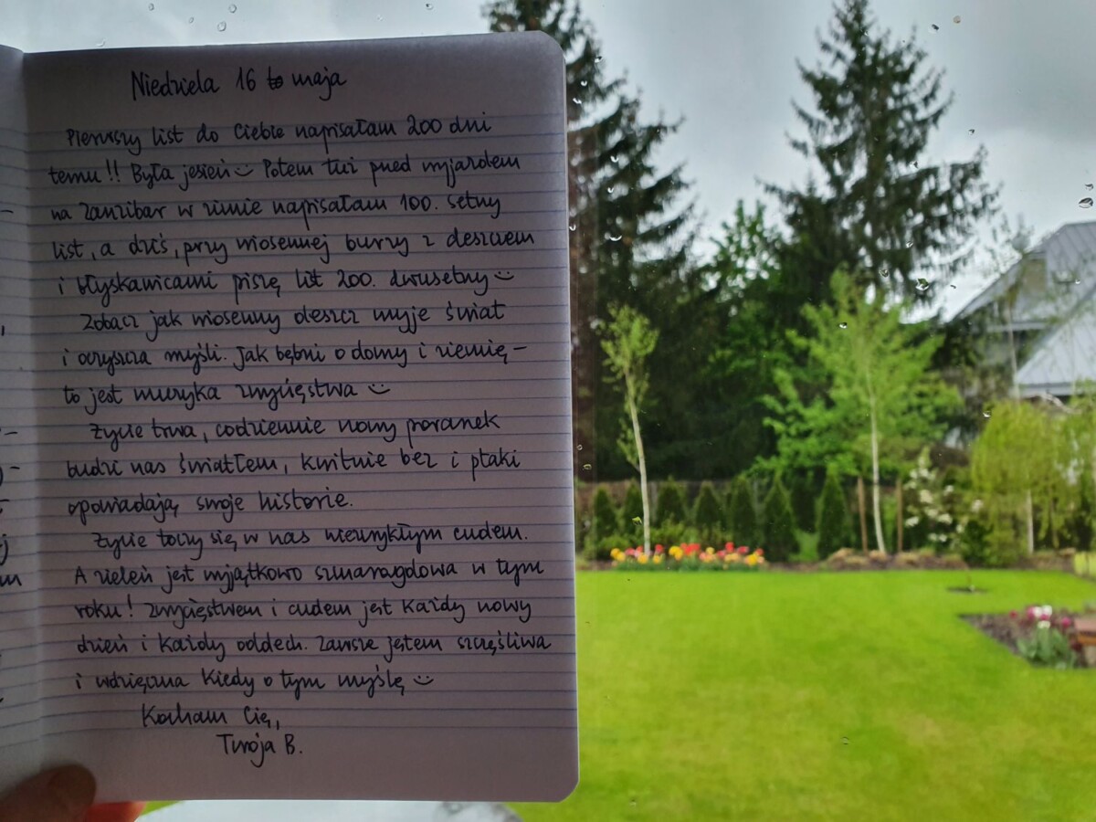 Pierwszy list do Ciebie napisałam 200 dni temu!! Była jesień 😊 Potem tuż przed wyjazdem na Zanzibar w zimie napisałam 100. setny list, a dziś, przy wiosennej burzy z deszczem i błyskawicami piszę list 200. dwusetny 😊