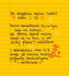 Pragniesz czegoś nowego, chcesz poczuć pełnię i znaleźć sens – szukaj ich W SOBIE. W swoim cudownym umyśle, gdzie drzemią pomysły i rozwiązania. Zadawaj sobie pytania, szukaj odpowiedzi, podejmuj codziennie wysiłek i działanie, które przybliży Cię do celu. Pragnij, działaj, kochaj, twórz.
