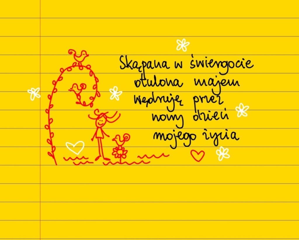 Skąpana w świergocie, otulona majem, wędruję przez mowy dzień mojego życia. #żółtakartka