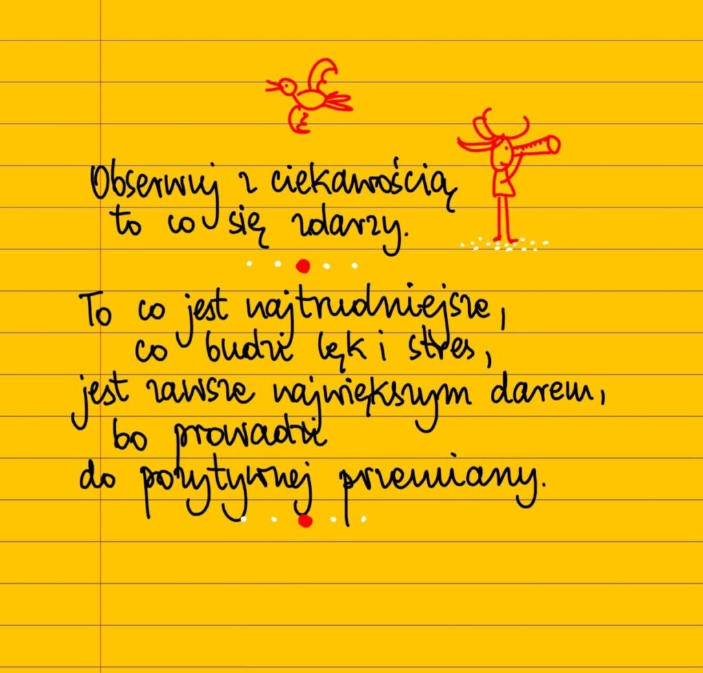 Obserwuj z ciekawością to co się zdarzy. To co jest najtrudniejsze, budzi lęk i stres, jest zawsze największym darem, bo prowadzi do pozytywnej przemiany. #żółtakartka