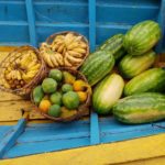 Arbuz, melon i papaja, na pierwszym planie – indiańskie winogrona, które rosną w dżungli na drzewie