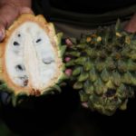 Guanabana, flaszowiec. Pod zieloną skórką kryje się miękki, kremowy, biały miąższ o delikatnym smaku