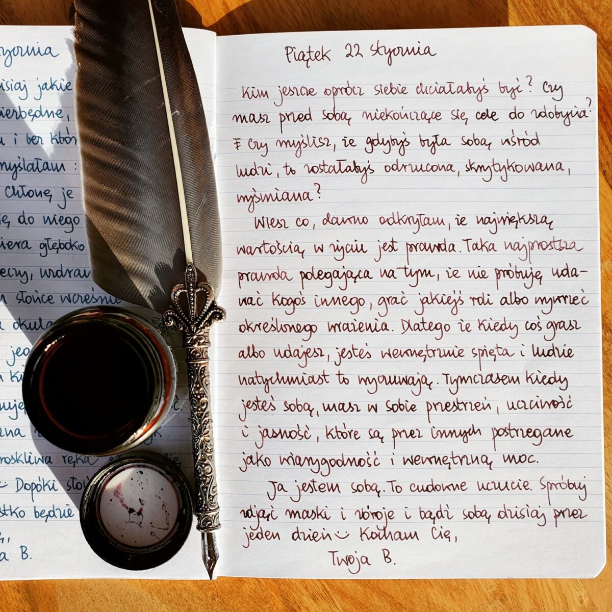 Ja jestem sobą. To cudowne uczucie. Spróbuj zdjąć maski i zbroje i bądź sobą dzisiaj przez jeden dzień 😊 Kocham Cię,