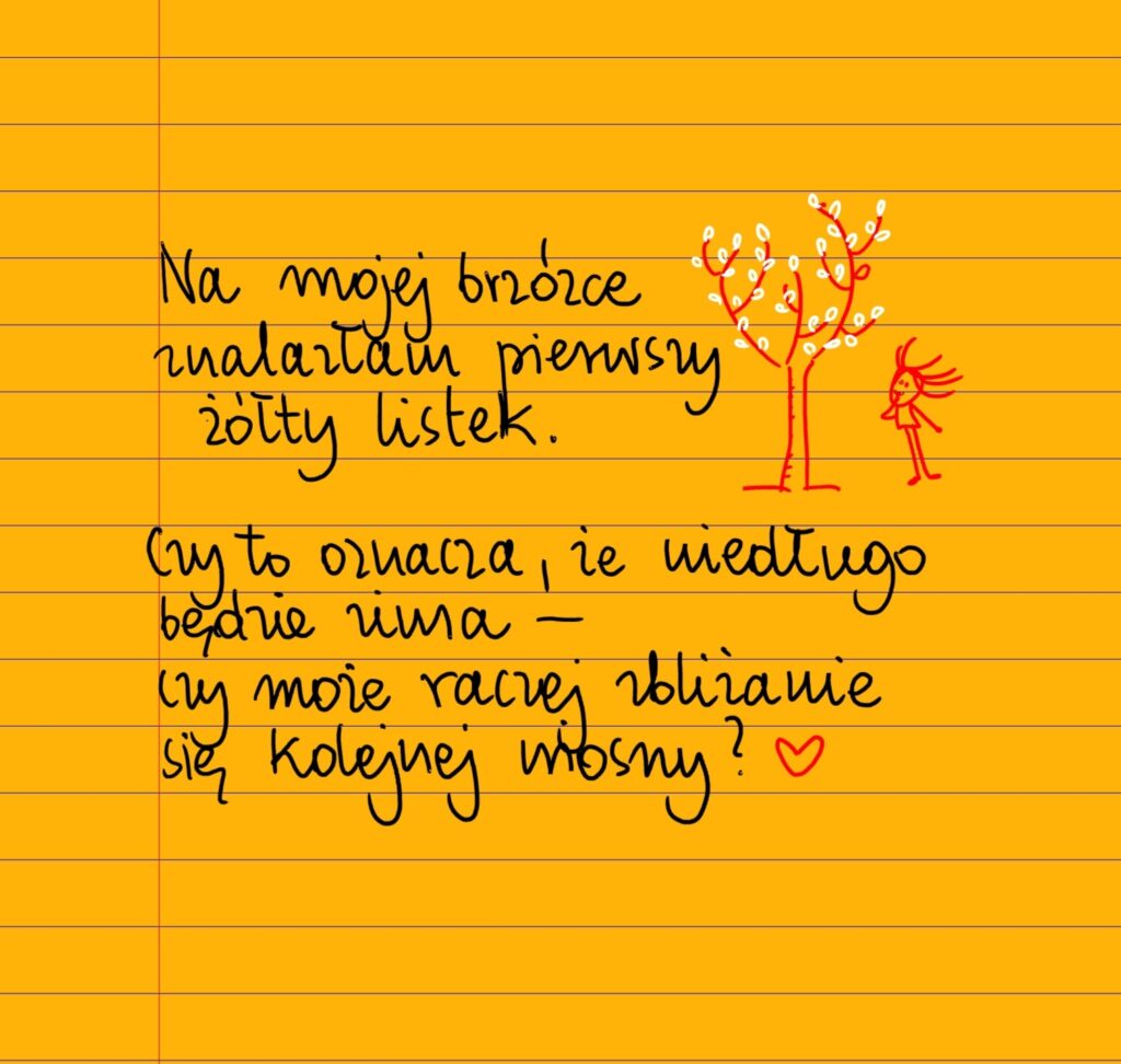 Na mojej brzózce znalazłam pierwszy żółty listek Czy to oznacza, że niedługo będzie jesień i zima, czy może raczej zbliżanie się kolejnej wiosny? ❤ #żółtakartka #beatapawlikowska