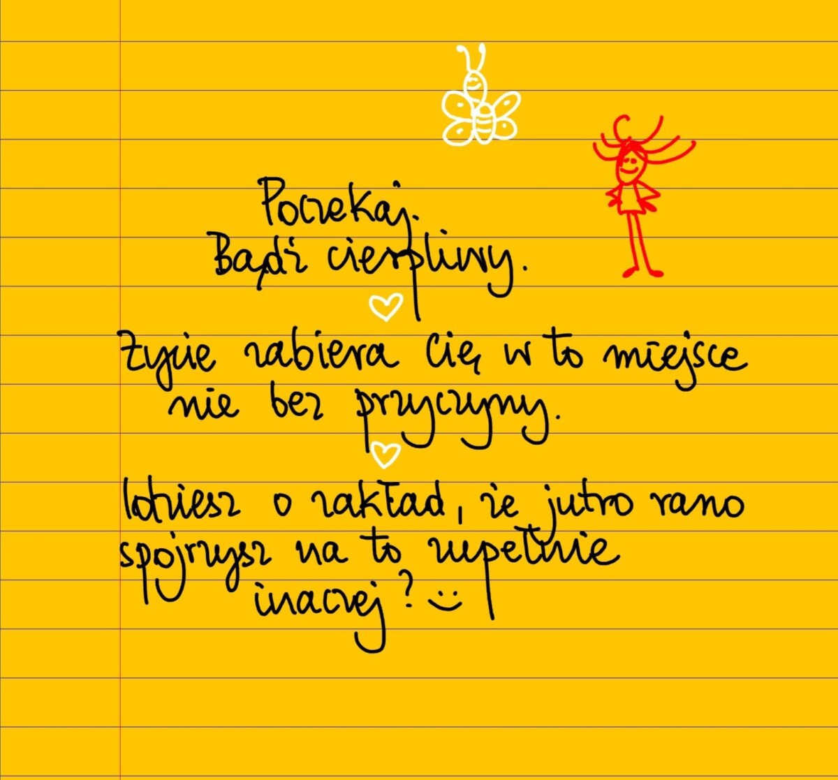 Poczekaj. Bądź cierpliwy. Życie zabiera cię w to miejsce nie bez przyczyny. Idziesz o zakład, że jutro rano będziesz myślał o tym zupełnie inaczej? #żółtakartka