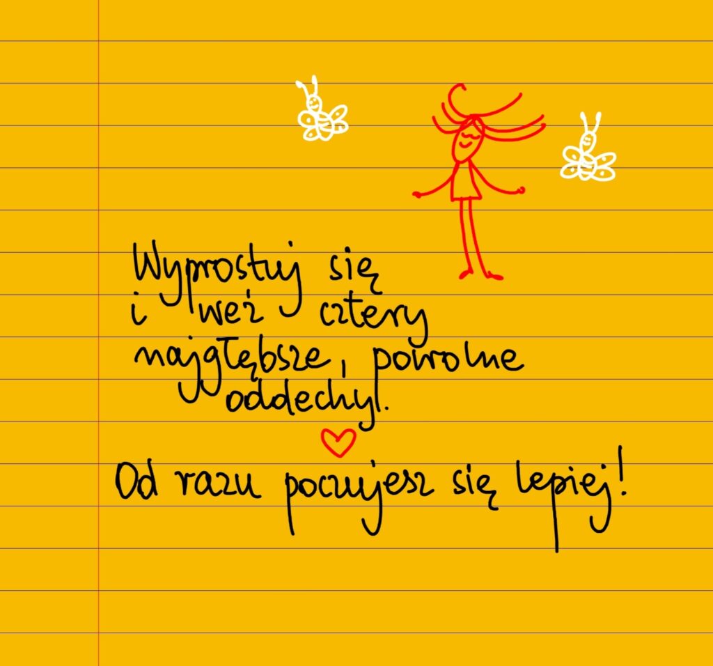 Wyprostuj plecy i weź cztery powolne najgłębsze oddechy. Od razu poczujesz się lepiej! ❤ #żółtakartka