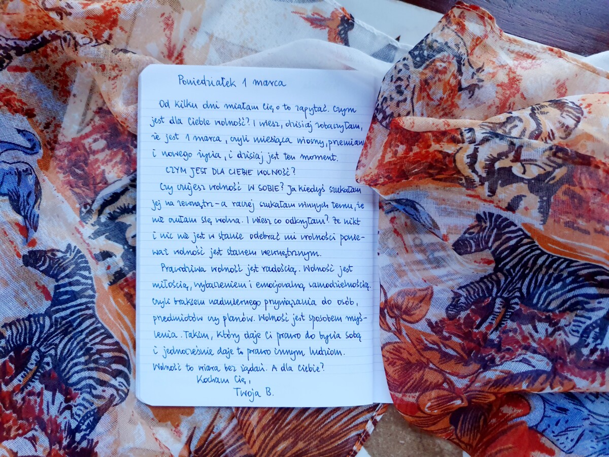 Od kilku dni miałam Cię o to zapytać. Czym jest dla Ciebie wolność? I wiesz, dzisiaj zobaczyłam, że jest 1 marca, czyli miesiąca wiosny, przemiany i nowego życia, i dzisiaj jest ten moment.