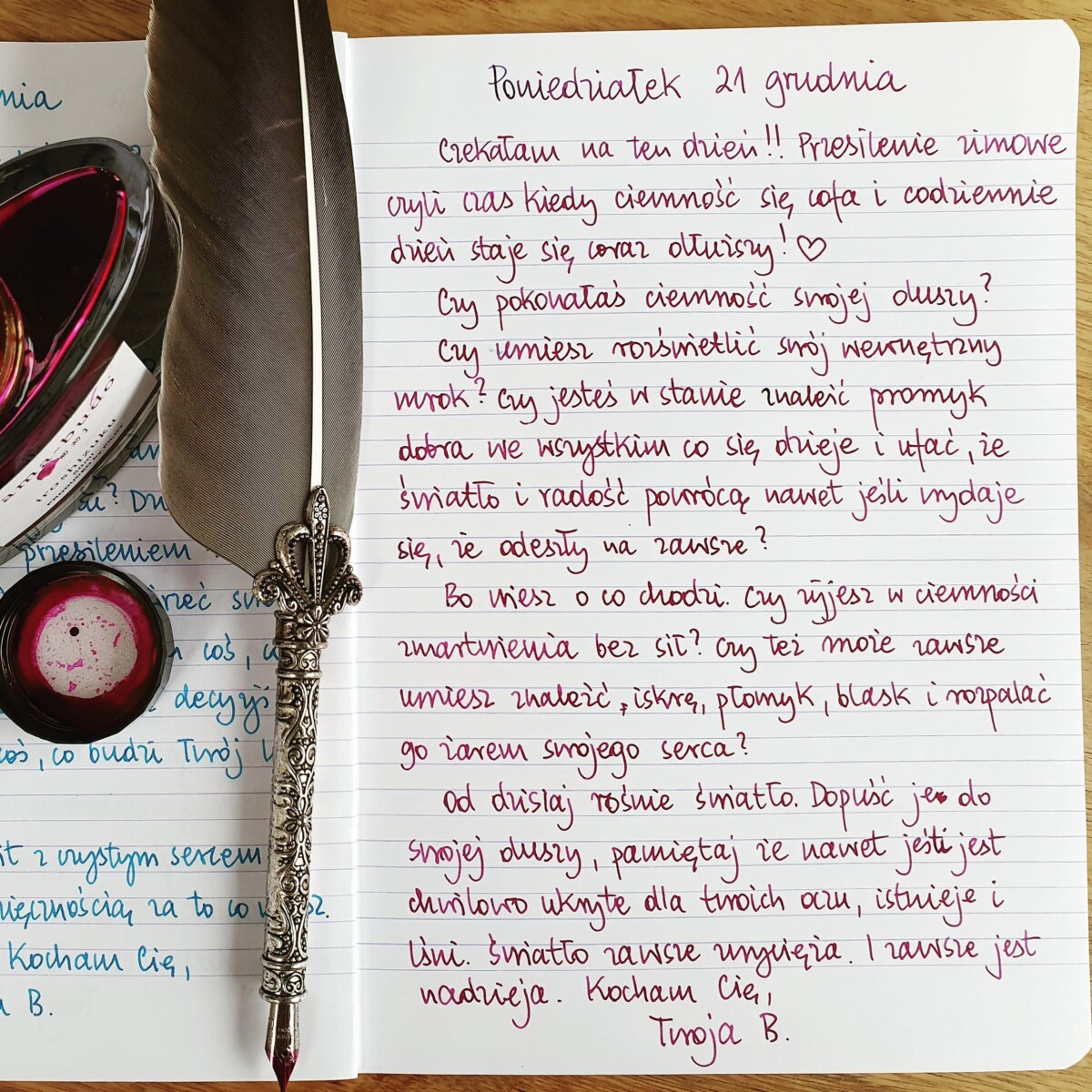 Od dzisiaj rośnie światło. Dopuść je do swojej duszy, pamiętaj że nawet jeśli jest chwilowo ukryte dla Twoich oczu, istnieje i lśni. Światło zawsze zwycięża. I zawsze jest nadzieja. Kocham Cię,