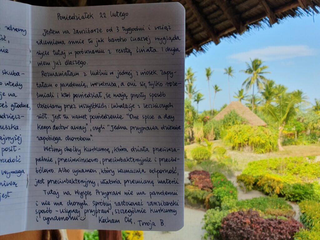Tutaj na Wyspie Przypraw nie ma pandemii i nie ma chorych. Spróbuj zastosować zanzibarski sposób – używaj przypraw, szczególnie kurkumy i cynamonu 😊