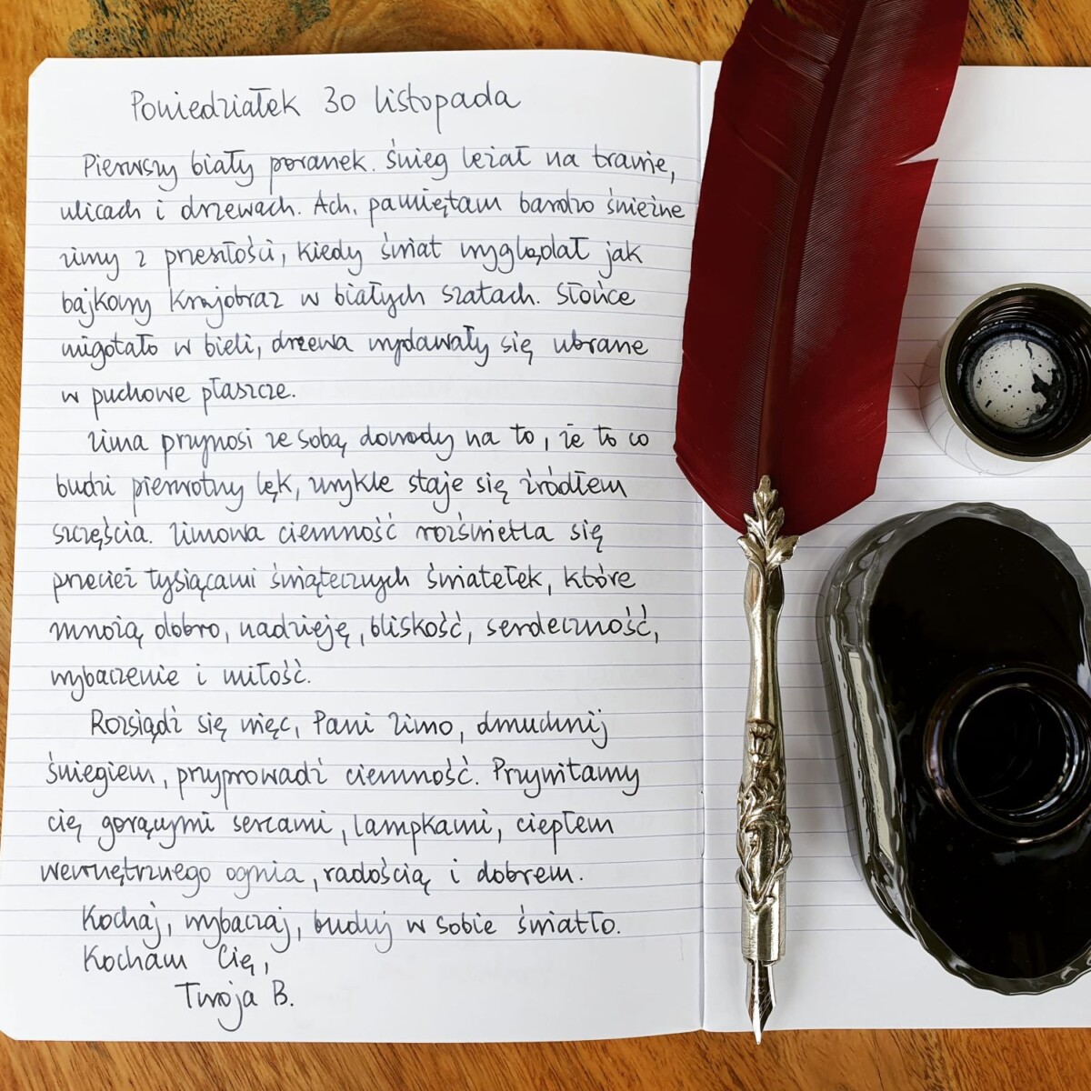 Rozsiądź się więc, pani Zimo, dmuchnij śniegiem, przyprowadź ciemność. Przywitamy cię gorącymi sercami, lampkami, ciepłem wewnętrznego ognia, radością i dobrem.