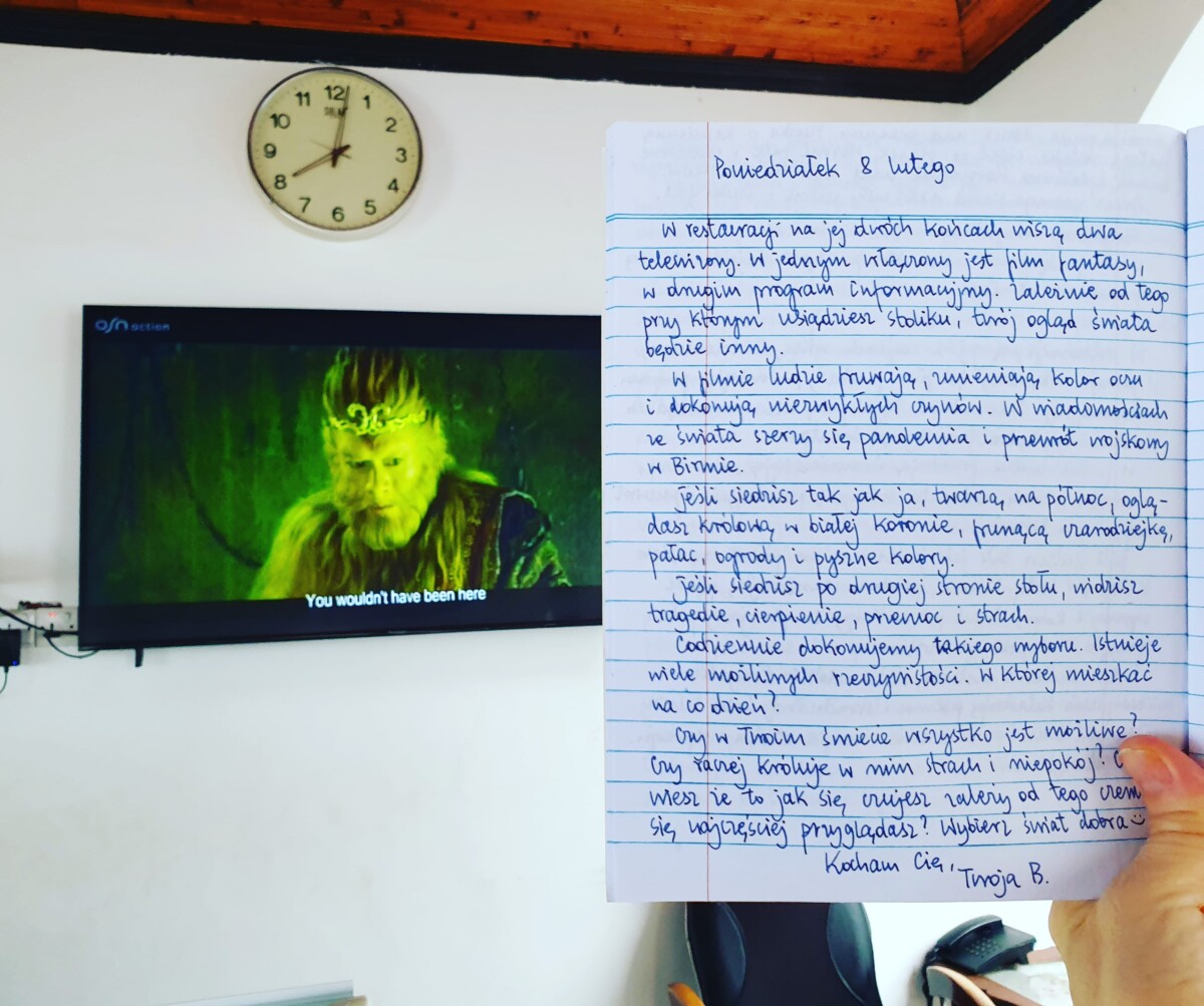 W restauracji na jej dwóch końcach wiszą dwa telewizory. W jednym włączony jest film fantasy, w drugim program informacyjny. Zależnie od tego przy którym usiądziesz stoliku, Twój oglad świata będzie inny.