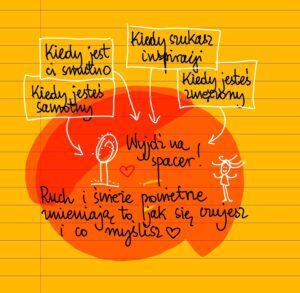 Nauczyłam się poprzez doświadczenie, że nastawienie pozytywne jest najbardziej efektywne. Zawsze, w każdej sytuacji można zobaczyć coś dobrego. Moim ulubionym ćwiczeniem mentalnym jest dzielenie czasu na mikroodcinki. Załóżmy, że wczoraj zdarzyło się coś złego, istnieje też możliwość, że jutro zdarzy się coś przykrego. Ode mnie zależy na czym skoncentruję swoją uwagę wraz ze wszystkimi konsekwencjami tego wyboru. Jeśli będę się martwić tym, co zdarzyło się wczoraj, będę tonąć w chaosie niepokoju, smutku, poczucia winy. Jeśli będę przeżywać lęk przed tym, co przyjdzie jutro, utonę w oceanie niepewności, strachu, przytłoczenia. Mam jednak ten mikroodcinek czasu, w którym znajduję się teraz. Trzymam w rękach kubek z ulubioną herbatą, mam w ustach kawałek gorzkiej czekolady, a może leżę wieczorem w ciepłym łóżku albo patrzę na płomienne liście jesiennych drzew. Czuję wdzięczność za to, że mogę odpocząć, zachwycam się kolorami jesieni, cieszę się smakiem czekolady, jestem wdzięczna za to, że żyję, myślę, mam okazję do nauki wynikającej z trudnych doświadczeń. To jest pozytywne nastawienie. Podejmuję możliwe działania w celu naprawienia sytuacji albo rozwiązania problemu, ale jednocześnie dostrzegam i doceniam to, co jest piękne, mądre, dobre, życzliwe. To daje mi siłę do tego, żeby iść naprzód.
