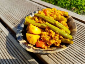 Do małego garnka wlej około kubka gorącej wody, zagotuj, dodaj opłukaną kaszę jaglaną i sól, gotuj na niewielkim ogniu ok. 15 minut – aż kasza spęcznieje i wchłonie wodę.