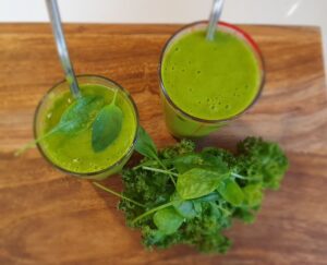 Zmiksuj wszystkie składniki – oprócz listków mięty do dekoracji – i pij od razu.