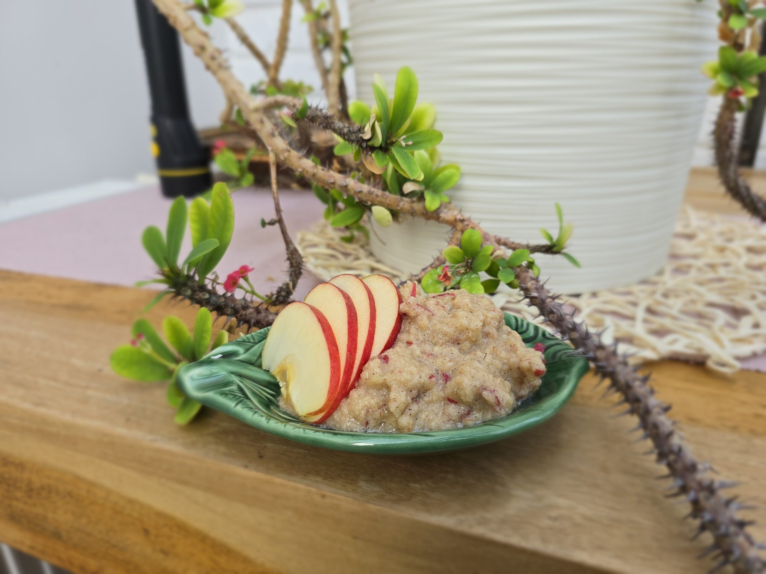 • 1 słodkie soczyste jabłko (takie jak np. ligol albo cortland)