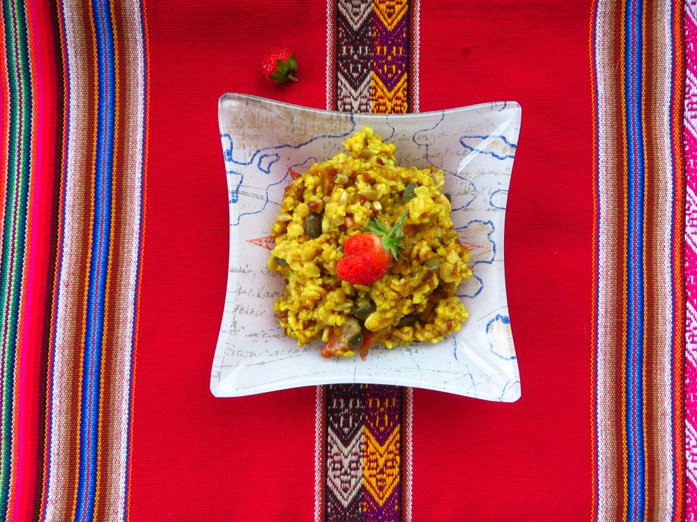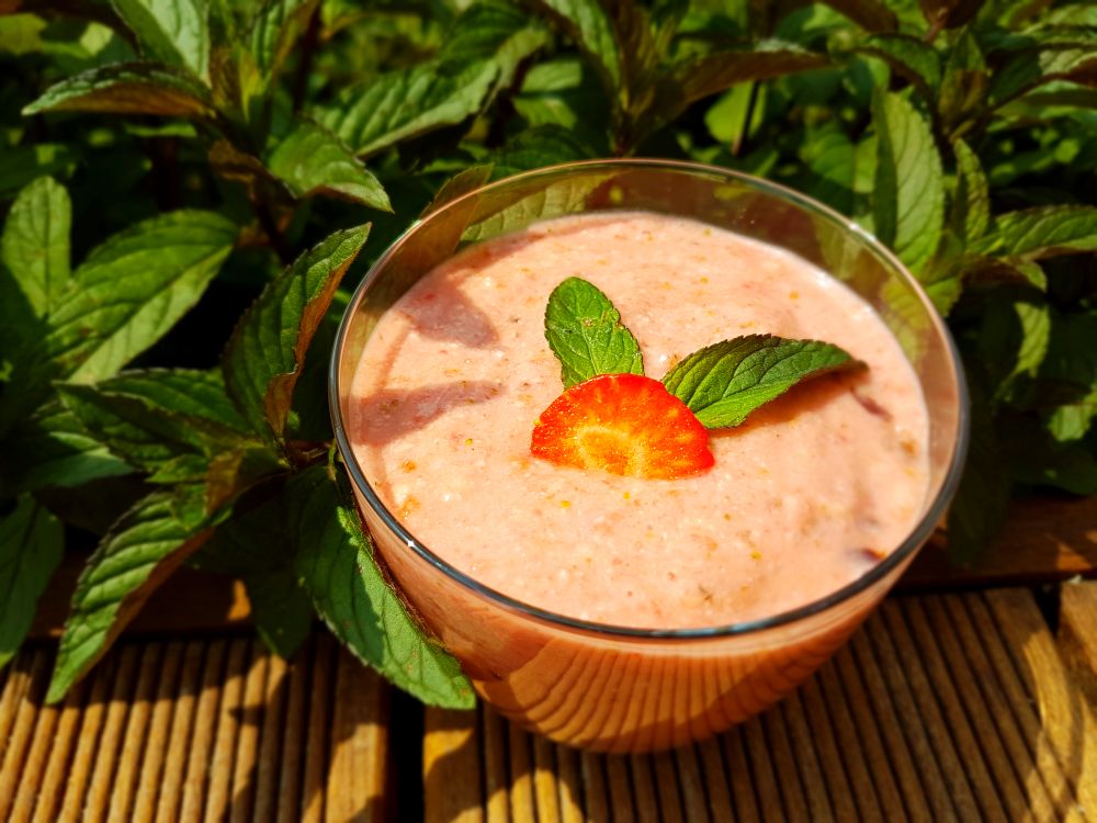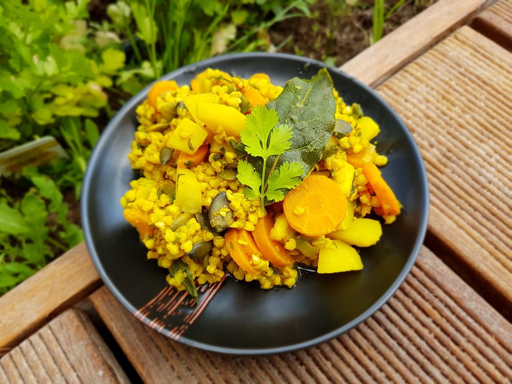 Do małego garnka wlej około kubka gorącej wody, zagotuj, dodaj opłukaną kaszę jaglaną i sól, gotuj na niewielkim ogniu ok. 15 minut – aż kasza spęcznieje i wchłonie wodę. W czasie kiedy kasza będzie się gotowała: Banany rozgnieć widelcem…