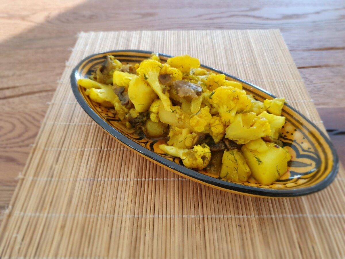 To szybkie i pyszne danie, którym ostatnio się zajadamy. Chrupiący, żółty kalafior w sosie własnym, bez dodatku wody, z pikantną nutą koperku i delikatnymi ziemniakami.