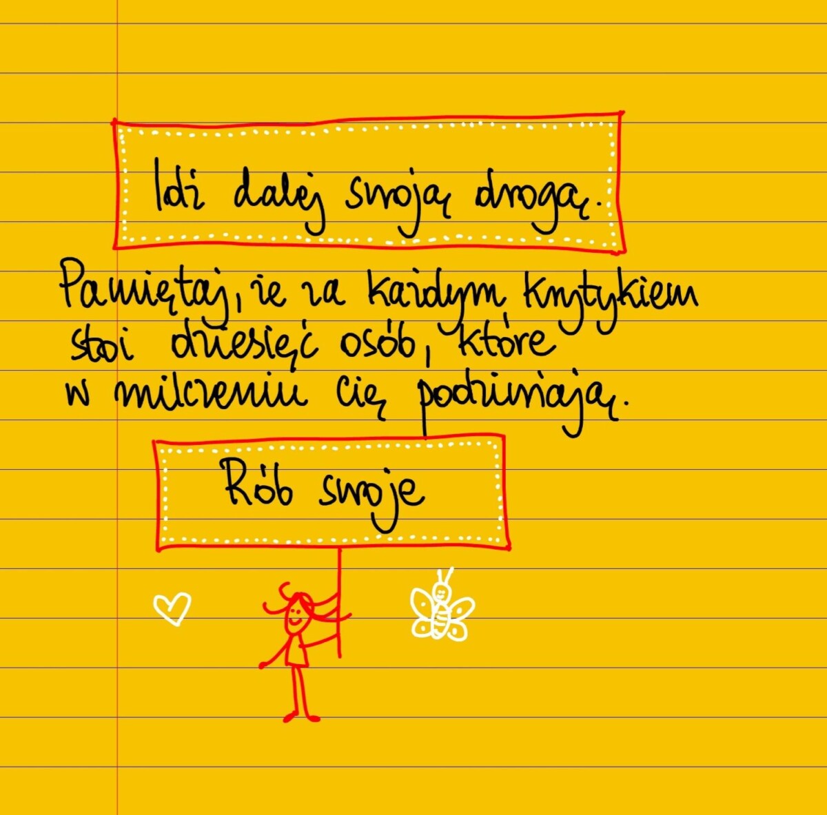Idź dalej swoją drogą. Pamiętaj, że za każdym krytykiem stoi dziesięć osób, które Cię w milczeniu podziwiają. Rób swoje. #żółtakartka