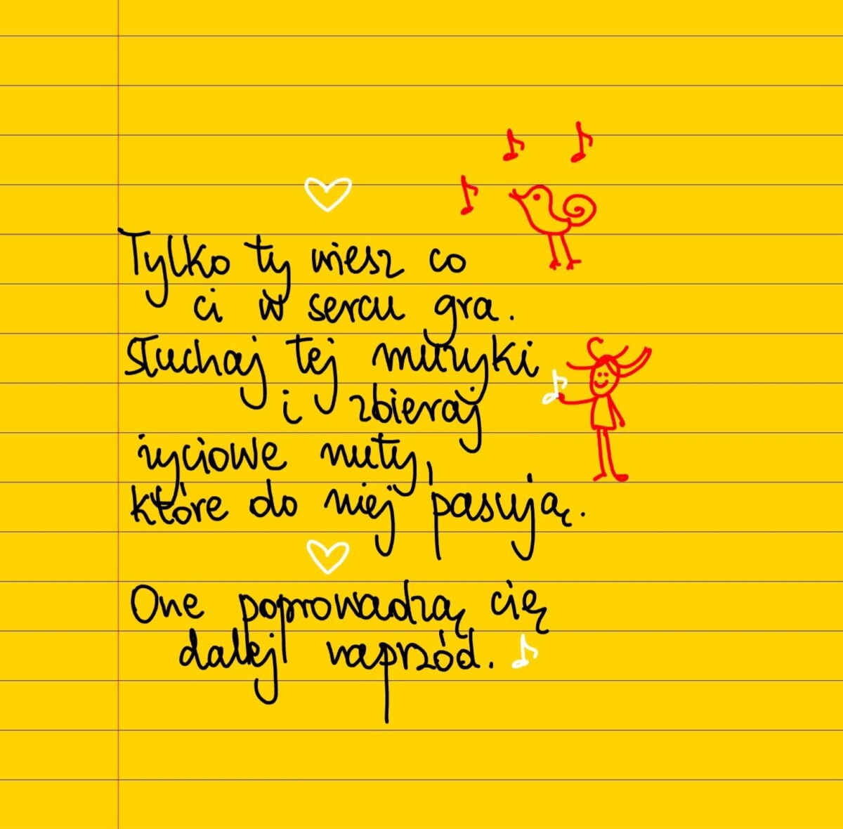 Tylko ty wiesz co ci w sercu gra. Słuchaj tej muzyki i zbieraj życiowe nuty, które do niej pasują. One poprowadzą cię dalej naprzód. #żółtakartka