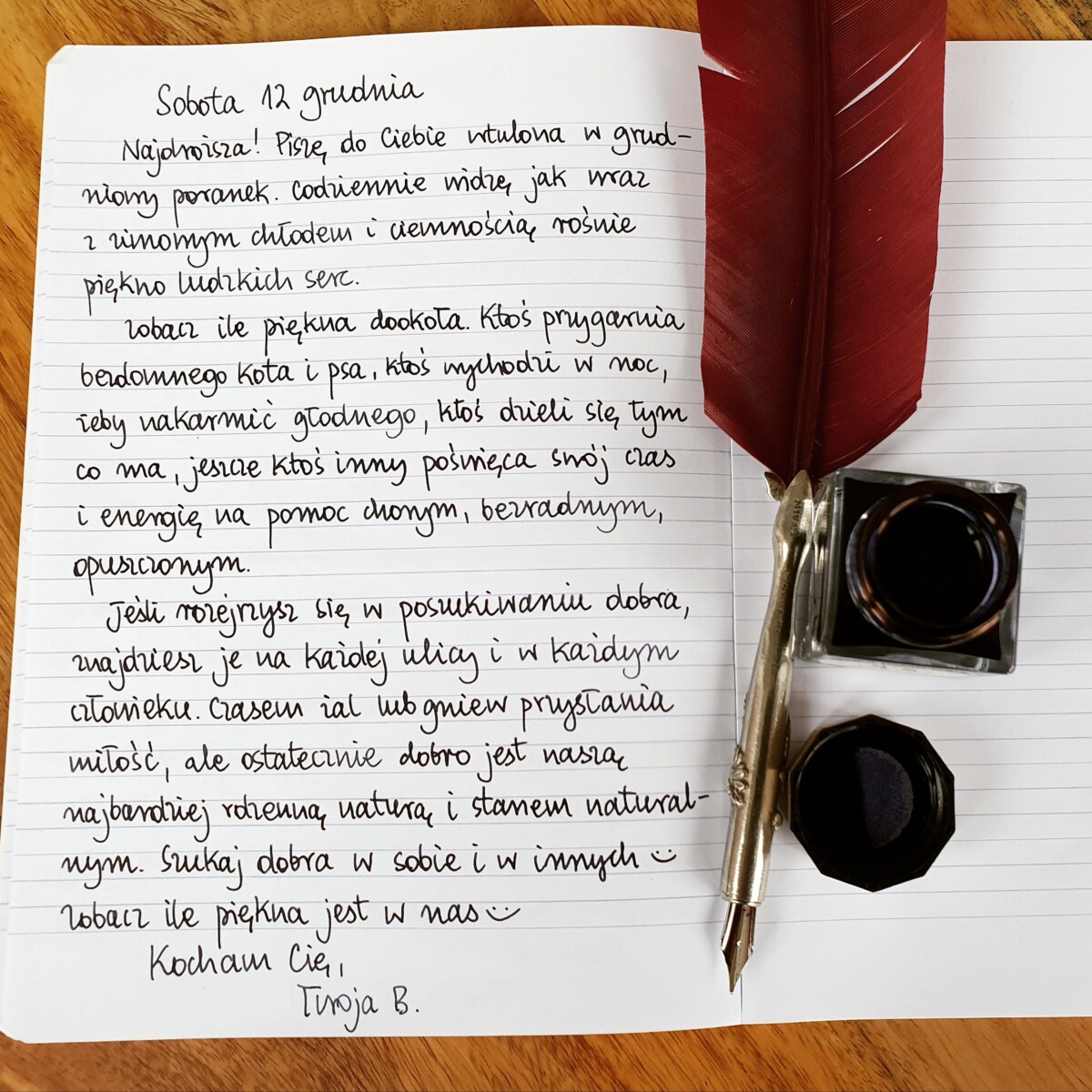 Najdroższa! Piszę do Ciebie wtulona w grudniowy poranek. Codziennie widzę jak wraz z zimowym chłodem i ciemnością rośnie piękno ludzkich serc.