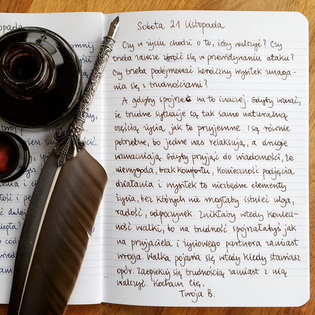 A gdyby spojrzeć na to inaczej. Gdyby uznać, że trudne sytuacje są tak samo naturalną częścią życia jak te przyjemne. I są równie potrzebne, bo jedne nas relaksują, a drugie wzmacniają. Gdyby przyjąć do wiadomości, że niewygoda, brak komfortu, konieczność podjęcia działania i wysiłek ro niezbędne elementy życia, bez których nie mogłaby istnieć ulga, radość, odpoczynek. Znikłaby wtedy konieczność walki, bo na trudność spojrzałabyś jak na przyjaciela i życiowego partnera zamiast wroga. Walka pojawia się wtedy kiedy stawiasz opór.