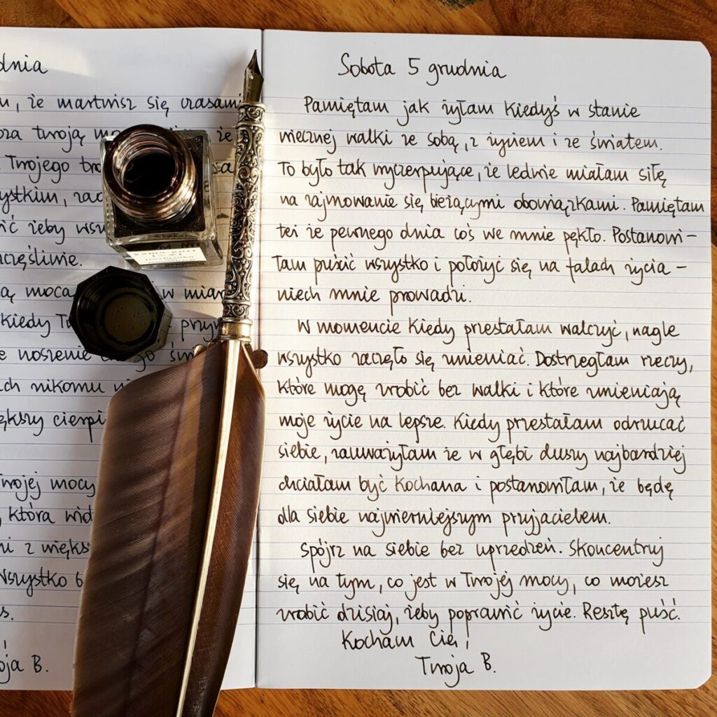 W momencie kiedy przestałam walczyć, nagle wszystko zaczęło się zmieniać. Dostrzegłam rzeczy, które mogę zrobić bez walki i które zmieniają moje życie na lepsze. Kiedy przestałam odrzucać siebie, zauważyłam, że w głębi duszy najbardziej chciałam być kochana i postanowiłam, że będę dla siebie najwierniejszym przyjacielem.