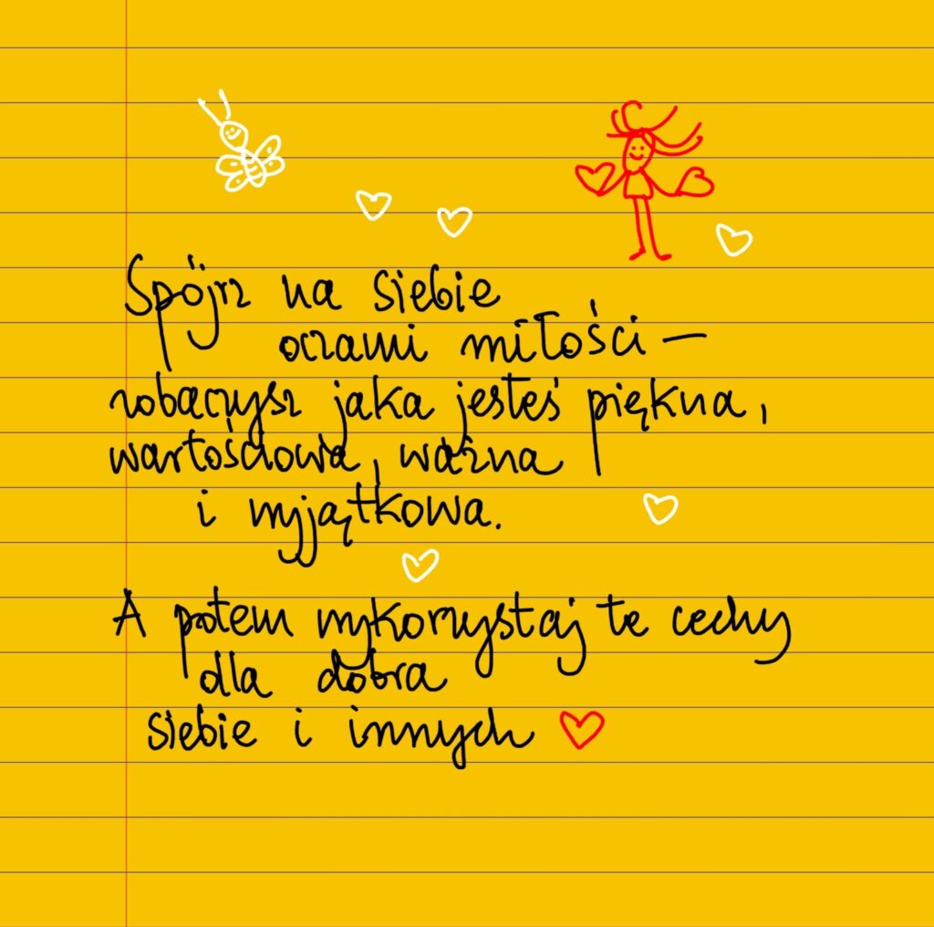 Spójrz na siebie oczami miłości – zobaczysz jaka jesteś piękna, wartościowa, ważna i wyjątkowa. A potem wykorzystaj te cechy dla dobra siebie i innych ❤
