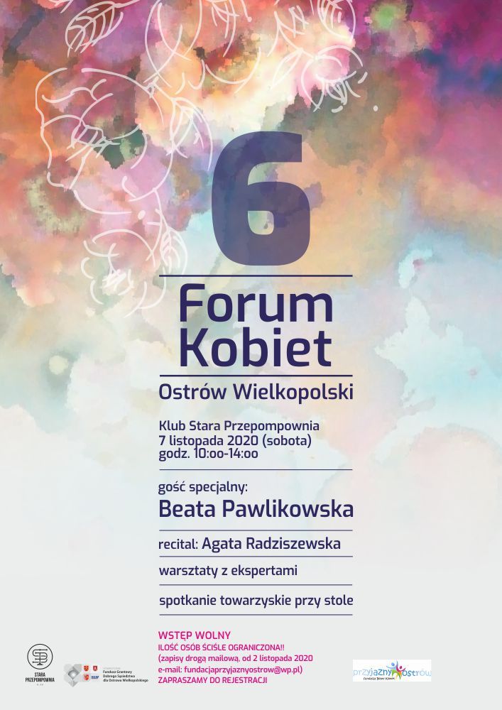 W sobotę 7.11 zapraszam na spotkanie podczas Forum Kobiet w Ostrowie Wielkopolskim. Będzie panel dyskusyjny, książki, autografy, pytania i odpowiedzi, początek godz. 10.00.