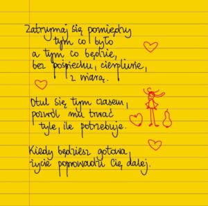 Bądź sobą. Znaj siebie. Podążaj po swojej własnej ścieżce. Bądź gotów podejmować wyzwania, uczyć się, być wiernym swoim wartościom. To przynosi szczęście 🙂