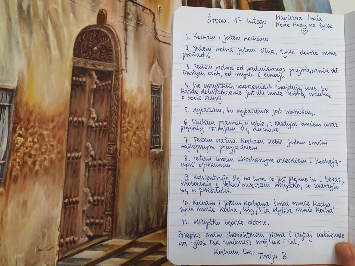 To są nowe kody podświadomości. Przepisz je swoim charakterem pisma i czytaj codziennie na głos. Noś je w sercu. Tak zmienisz swój lęk i żal.