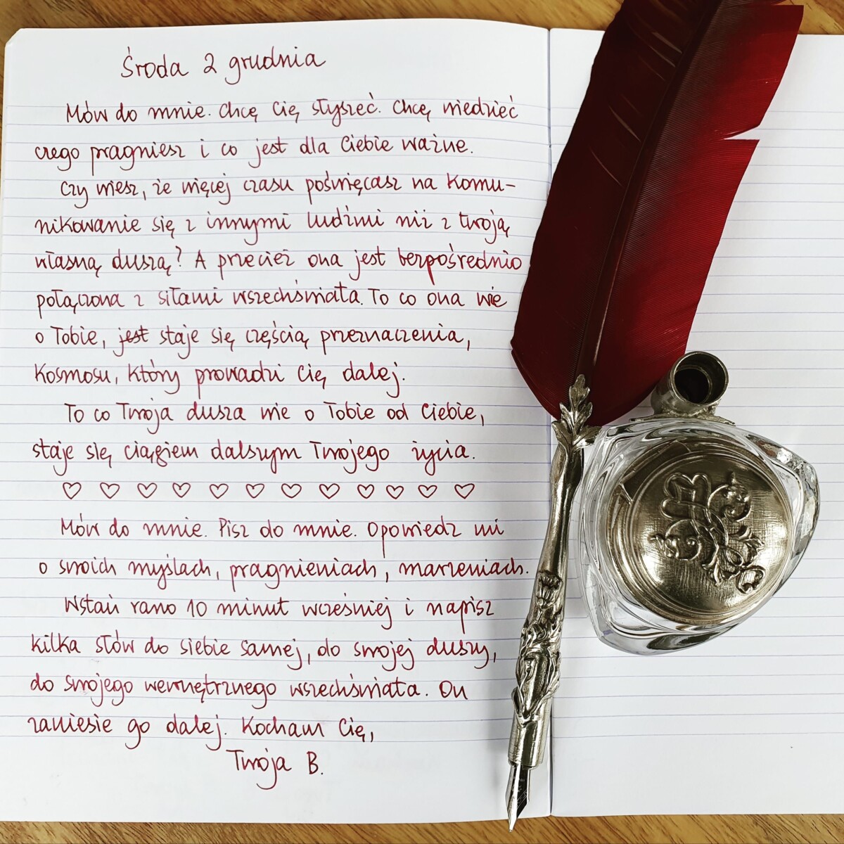 Wstań rano 10 minut wcześniej i napisz kilka słów do siebie samej, do swojej duszy, do swojego wewnętrznego wszechświata. On zaniesie to dalej.