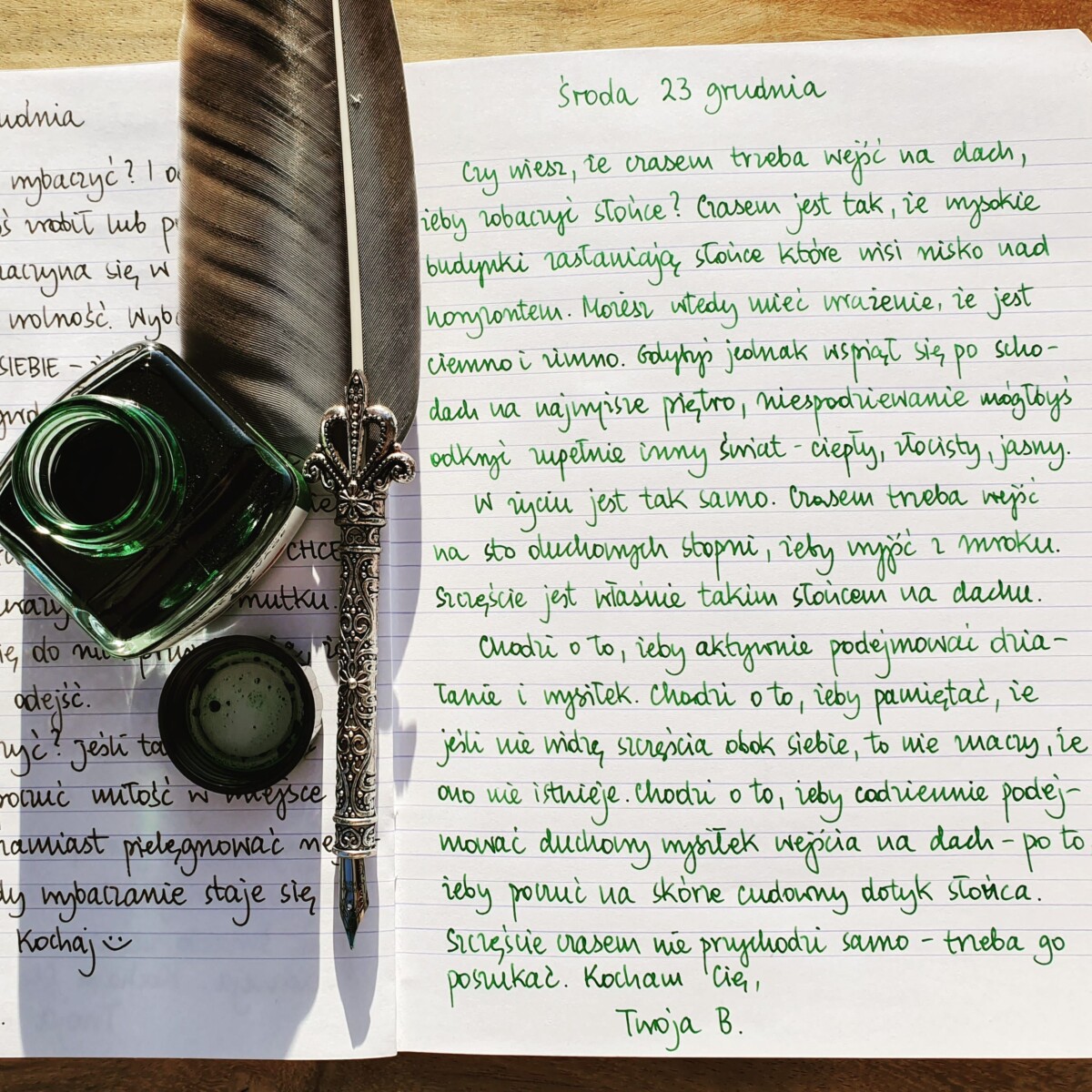 Chodzi o to, żeby aktywnie podejmować działanie i wysiłek. Chodzi o to, żeby pamiętać, że jeśli nie widzę szczęścia obok siebie, to nie znaczy, że ono nie istnieje. Chodzi o to, żeby codziennie podejmować duchowy wysiłek wejścia na dach – po to, żeby poczuć na skórze cudowny dotyk słońca.
