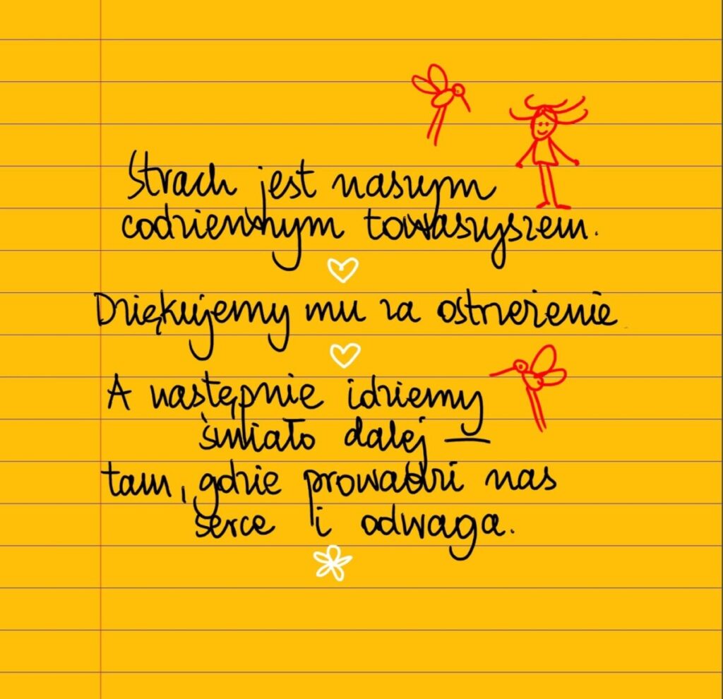 Strach jest naszym codziennym towarzyszem. Dziękujemy mu za ostrzeżenie, a następnie idziemy śmiało dalej tam, gdzie prowadzi nas serce i odwaga. #żółtakartka