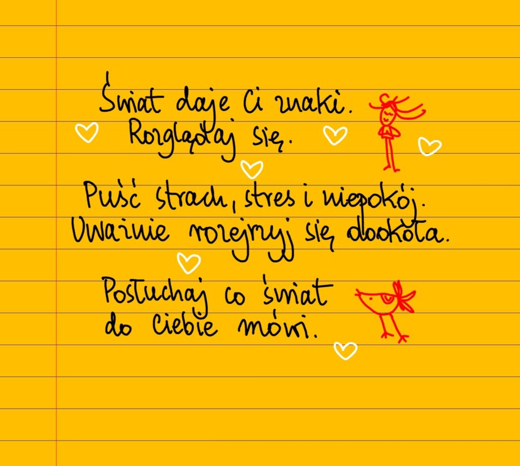 Świat daje ci znaki. Rozglądaj się. Puść strach, stres i niepokój. Zatrzymaj się i uważnie rozejrzyj się dookoła. Posłuchaj, co świat do ciebie mówi ❤