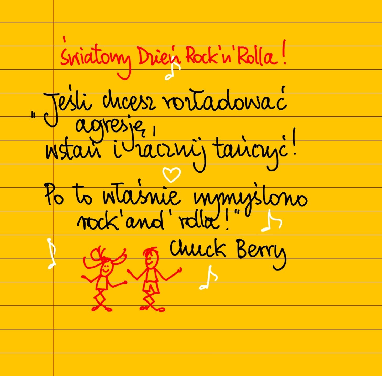„Jeśli chcesz rozładować swoją agresję, wstań i zacznij tańczyć! Po to właśnie wymyślono rock and rolla”. Chuck Berry. Dzisiaj jest Światowy Dzień Rock’n’Rolla ❤ #żółtakartka