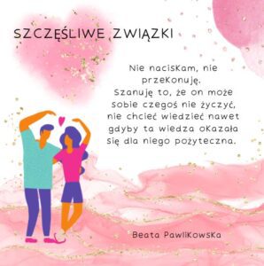 Ja wcześnie chodzę spać i wcześnie wstaję. Mój partner mówi, że też by tak chciał, ale… zdarza mu się wieczorem zasiedzieć przy książce albo serialu. Czasem wstaje w nocy, bo nie może spać albo przewraca się z boku na bok. Zaczęłam czytać książki na ten temat, dowiedziałam się mnóstwo pożytecznych rzeczy. I ponieważ mój partner mówi czasem, że ma problemy ze spaniem, to wiem, że jest kilka prostych rzeczy, które mógłby zrobić, żeby spać lepiej. Kiedy proponuję, żebyśmy razem obejrzeli wykład na temat snu, mówi, że „może kiedyś”. Wyczuwam odrobinę oporu w jego głosie. Wiem, że „może kiedyś” nigdy nie nastąpi. I nie naciskam. To jego wybór. Wycofuję się, oglądam następne wykłady, czytam książki, zdobywam wiedzę. Wiem, że gdyby Danny obejrzał te filmy razem ze mną i gdyby zastosował proste praktyczne wskazówki w nich zawarte, poprawiłaby się jakość jego snu, a dzięki temu też jakość jego życia. Ale z jakiegoś powodu on nie jest w tej chwili na to gotowy. Jest dorosły, podejmuje własne decyzje, ja to szanuję. “Szczęśliwe związki” – audiobook, ebook i tradycyjna książka, dostępna na swiatksiazki.pl, empik.pl i w innych księgarniach.