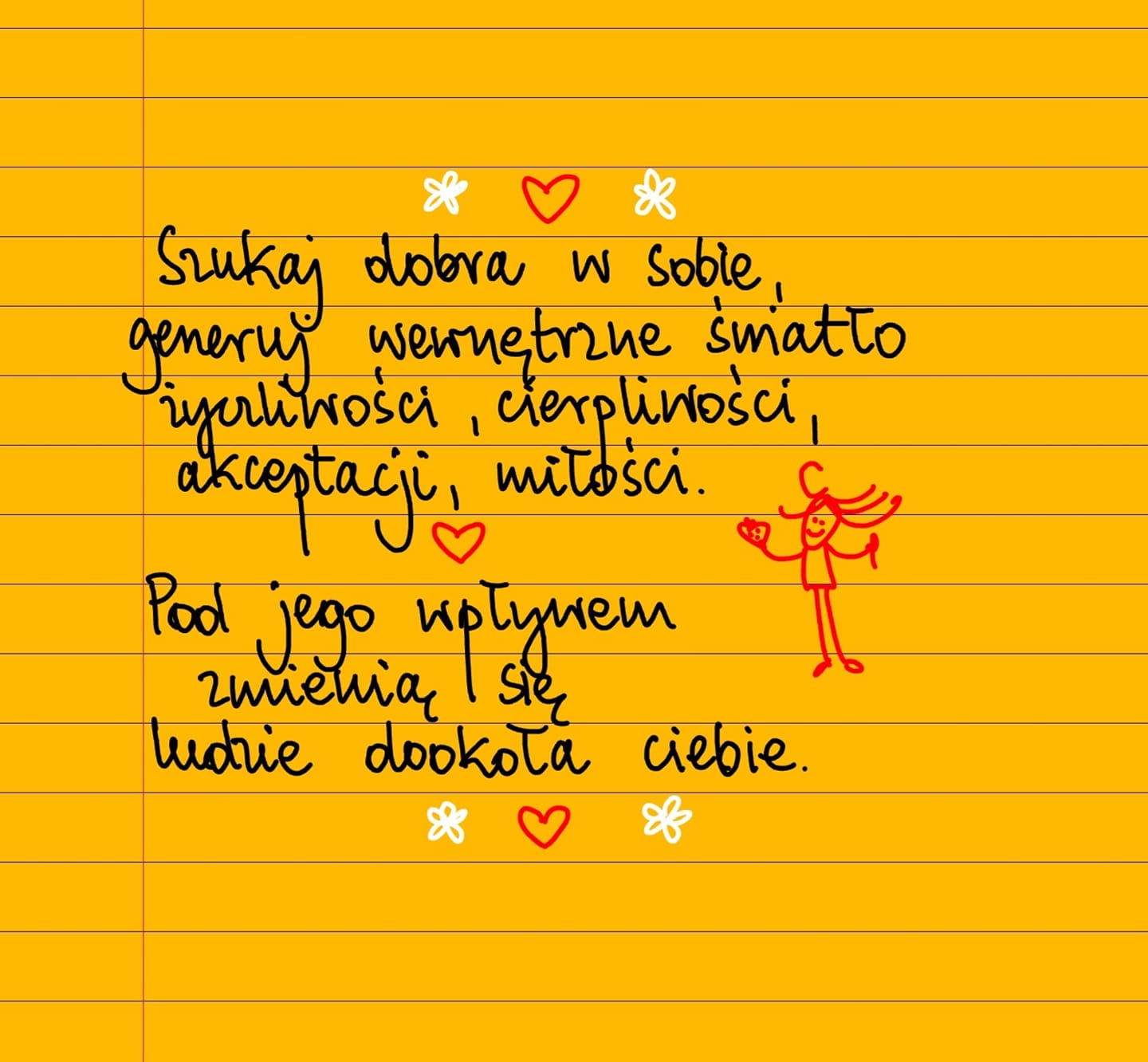 Szukaj dobra w sobie, generuj wewnętrzne światło życzliwości, cierpliwości, akceptacji, miłości. Pod jego wpływem zmienią się ludzie dookoła ciebie, ❤ #żółtakartka