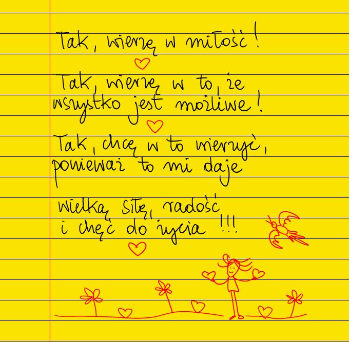 Tak, wierzę w miłość! ❤ Tak, wierzę w to, że wszystko jest możliwe! ❤ Tak, chcę w to wierzyć, ponieważ to mi daje wielką siłę, radość i chęć do życia! ❤ #żółtakartka