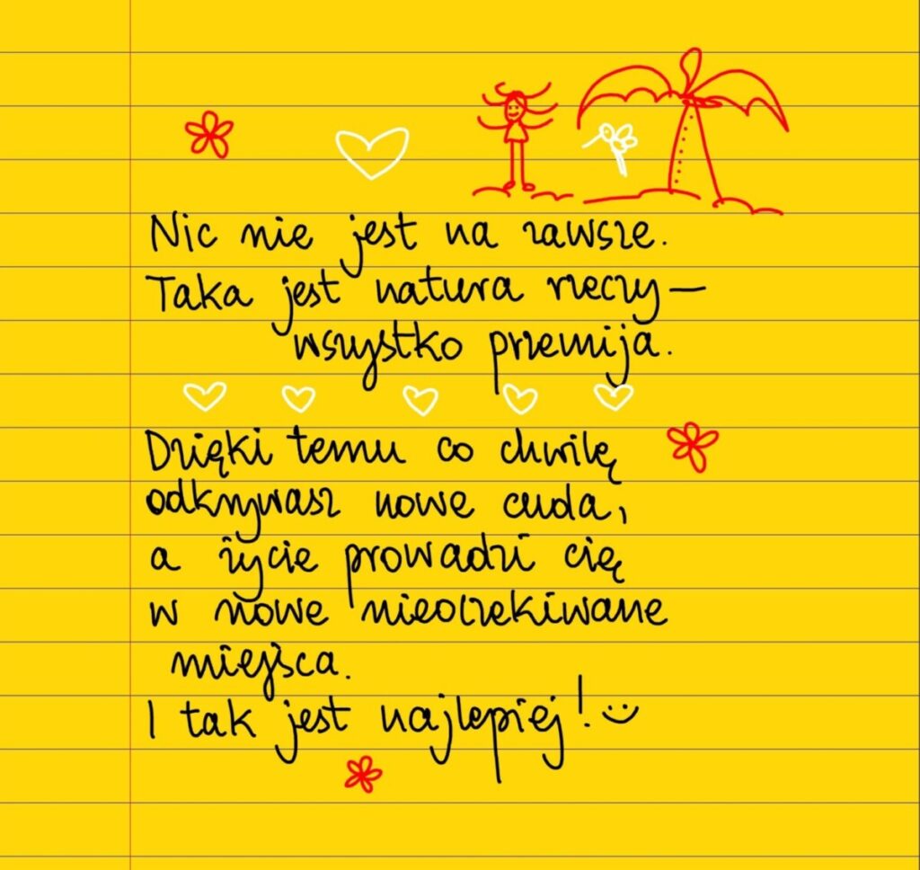 Nic nie jest na zawsze. Taka jest natura rzeczy – wszystko przemija. Dzięki temu co chwilę odkrywasz nowe cuda, a życie prowadzi cię do nowych nieoczekiwanych miejsc. I tak jest najlepiej! #żółtakartka