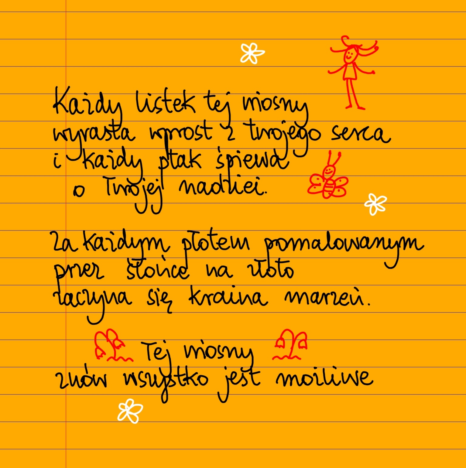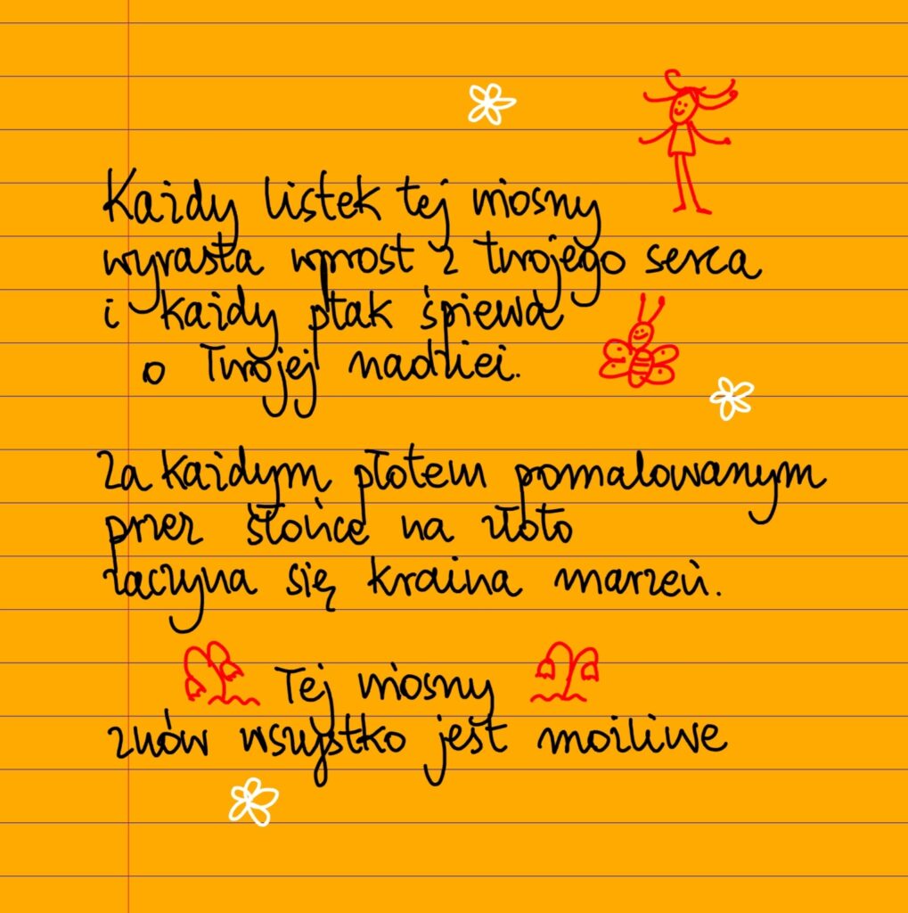 Zobacz – każdy listek tej wiosny wyrasta wprost z twojego serca i każdy ptak śpiewa o twojej nadziei. Za każdym płotem pomalowanym przez słońce na złoto zaczyna się cudowna kraina marzeń. Tej wiosny znów wszystko jest możliwe ❤#żółtakartka #beatapawlikowska