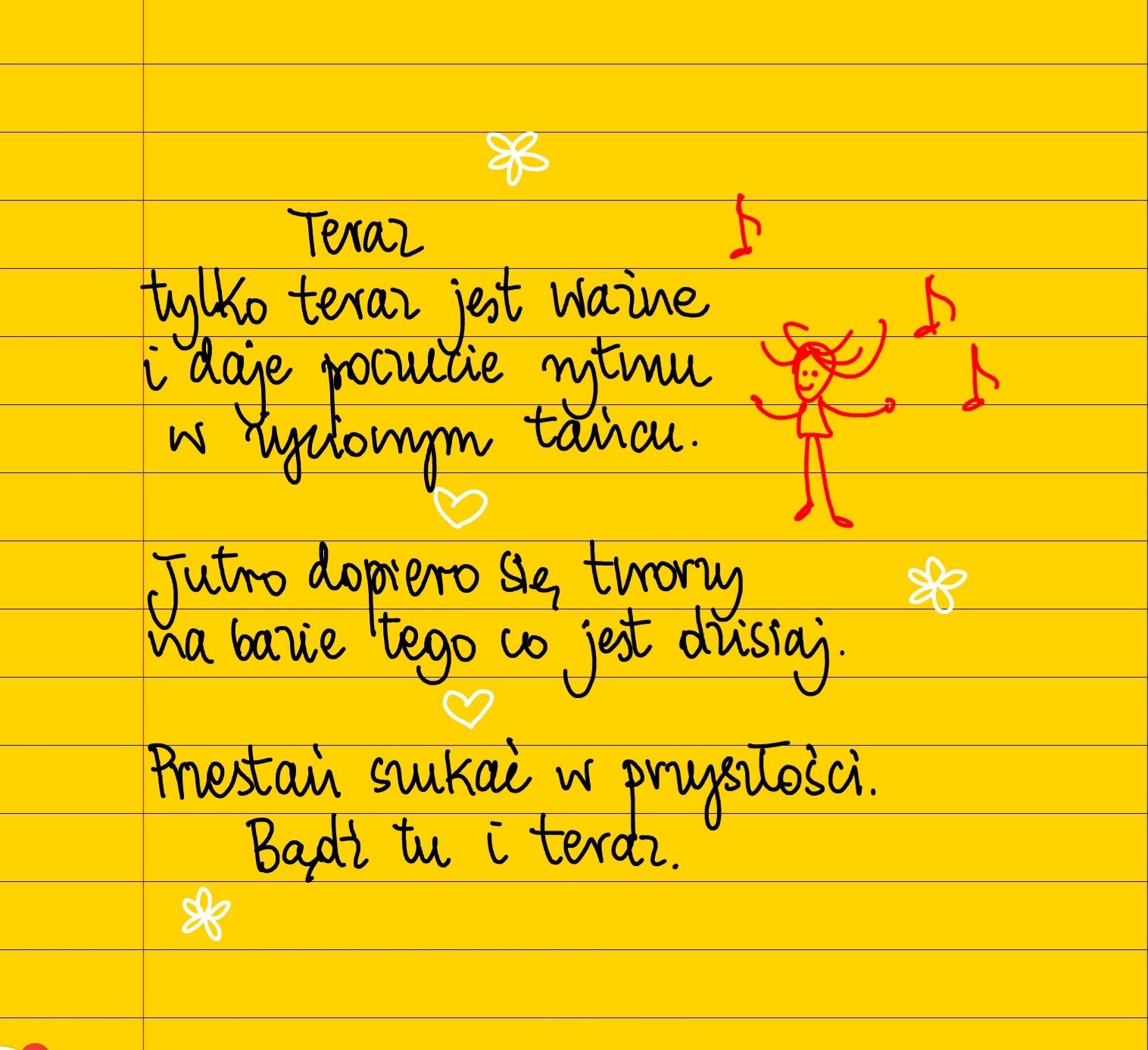Teraz. Tylko teraz jest ważne i daje poczucie rytmu w życiowym tańcu. Jutro dopiero się tworzy na bazie tego, co jest dzisiaj. Przestań szukać w przyszłości. Bądź tu i teraz ❤ #żółtakartka