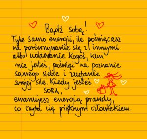 To było naprawdę niesamowite. Pewnego dnia uzmysłowiłam sobie, że szukam miłości i akceptacji u innych ludzi, a jednocześnie kompletnie nie potrafię kochać i wspierać samej siebie. Traktowałam siebie jak pogardzanego niewolnika, którego trzeba karać, wyzywać i upokarzać.