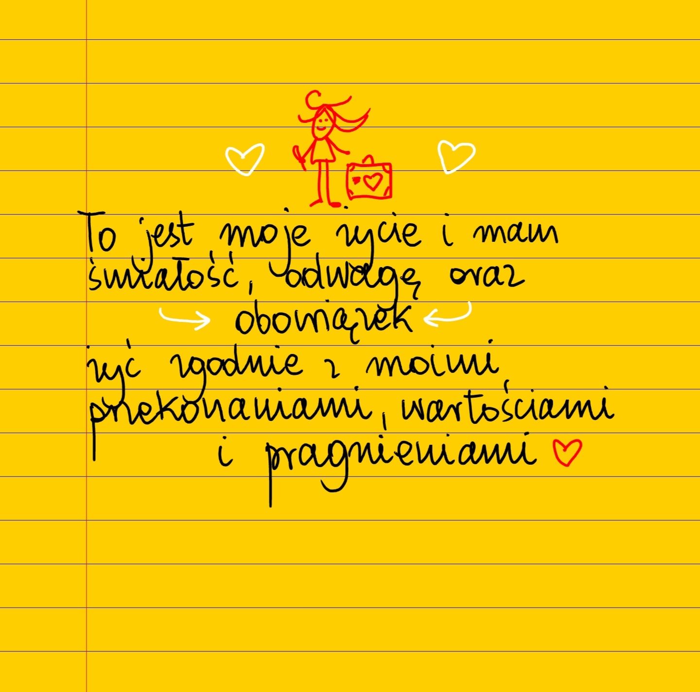 To jest moje życie i mam śmiałość, odwagę, prawo oraz obowiązek żyć zgodnie z moimi przekonaniami, wartościami i pragnieniami ❤ #żółtakartka #beatapawlikowska